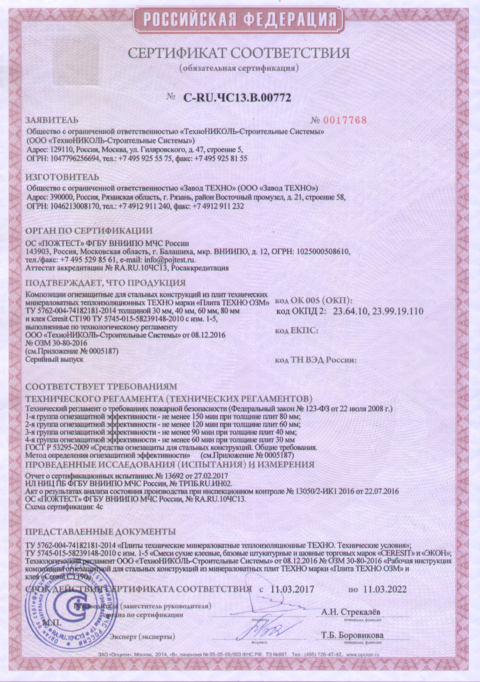 Сертификаты продукции Кнауф
